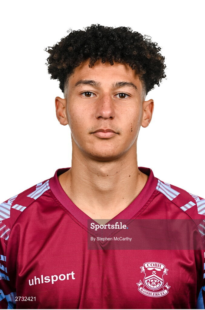 12 February 2024; Nolan Evers poses for a portrait during a Cobh Ramblers FC squad portraits session at St Coleman's Park in Cobh, Cork. Photo by Stephen McCarthy/Sportsfile