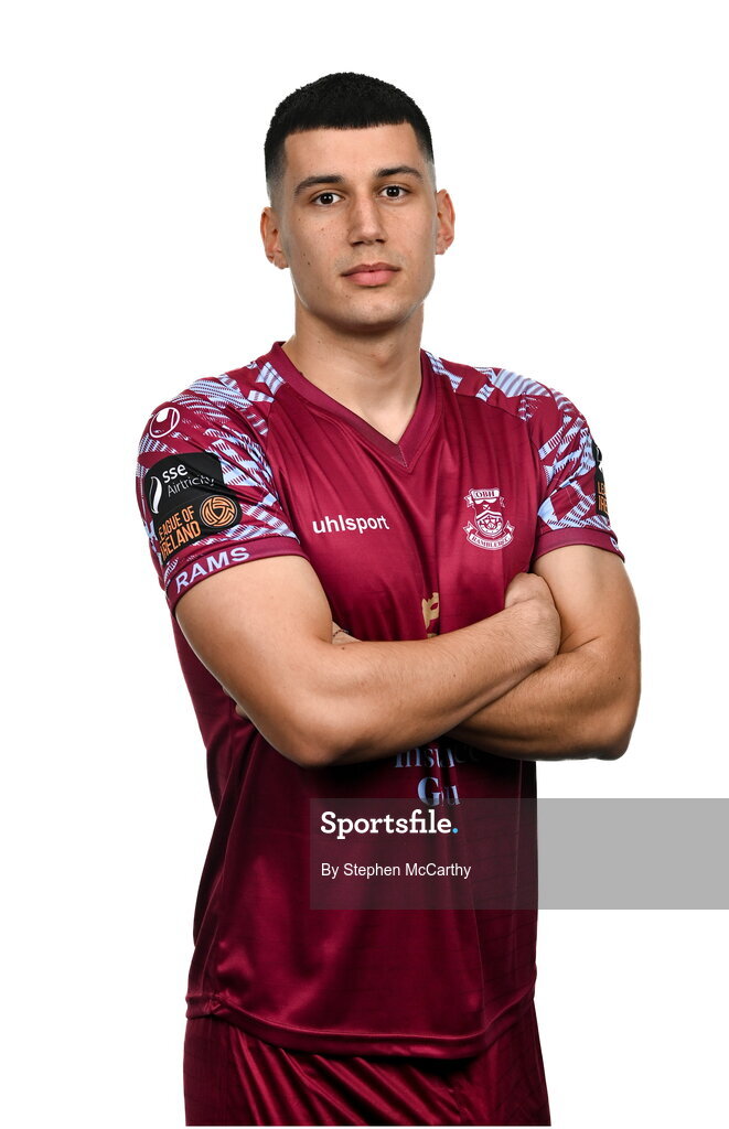 12 February 2024; Alessandro De Sanctis poses for a portrait during a Cobh Ramblers FC squad portraits session at St Coleman's Park in Cobh, Cork. Photo by Stephen McCarthy/Sportsfile