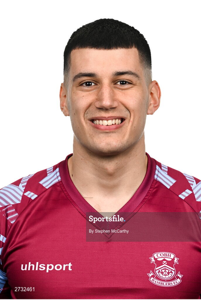 12 February 2024; Alessandro De Sanctis poses for a portrait during a Cobh Ramblers FC squad portraits session at St Coleman's Park in Cobh, Cork. Photo by Stephen McCarthy/Sportsfile