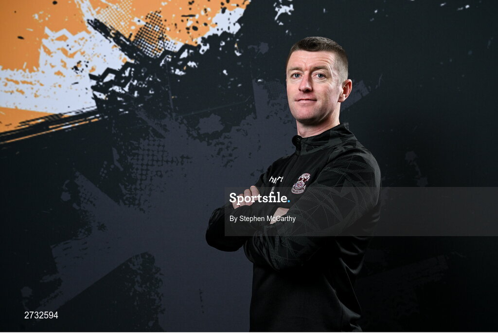 12 February 2024; Manager Gary Hunt poses for a portrait during a Cobh Ramblers FC squad portraits session at St Coleman's Park in Cobh, Cork. Photo by Stephen McCarthy/Sportsfile
