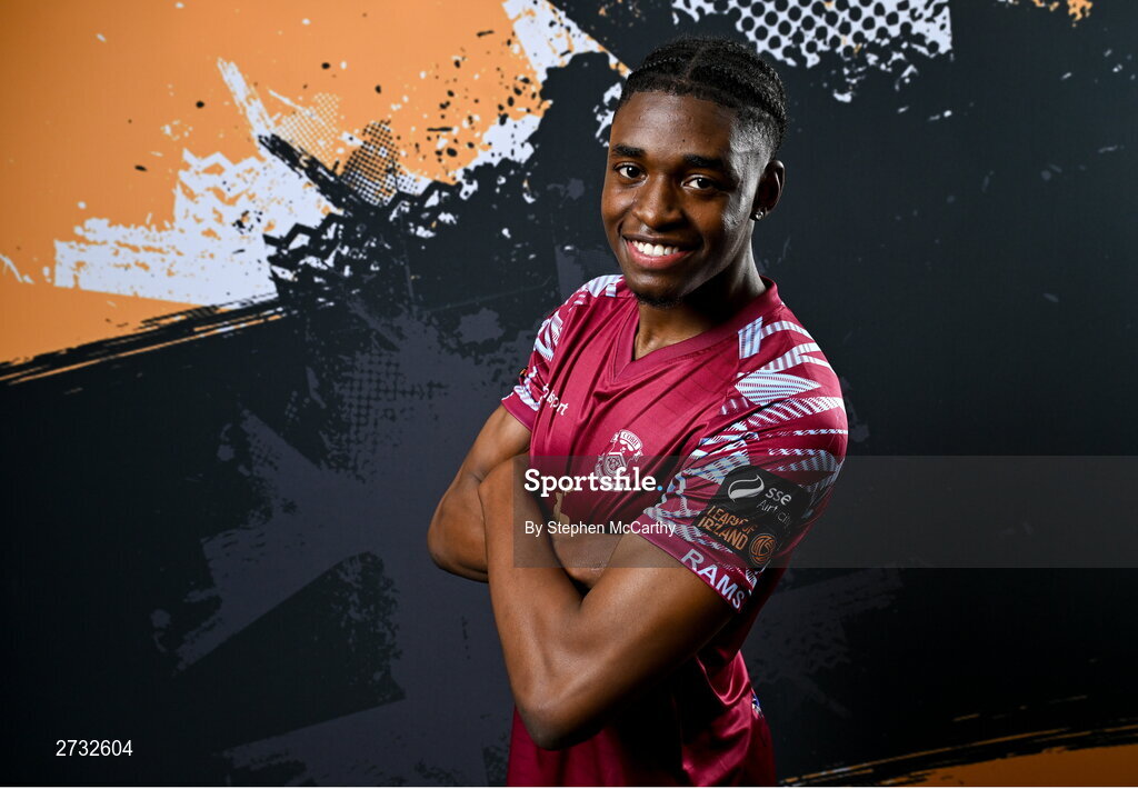 12 February 2024; Justin Eguaibor poses for a portrait during a Cobh Ramblers FC squad portraits session at St Coleman's Park in Cobh, Cork. Photo by Stephen McCarthy/Sportsfile