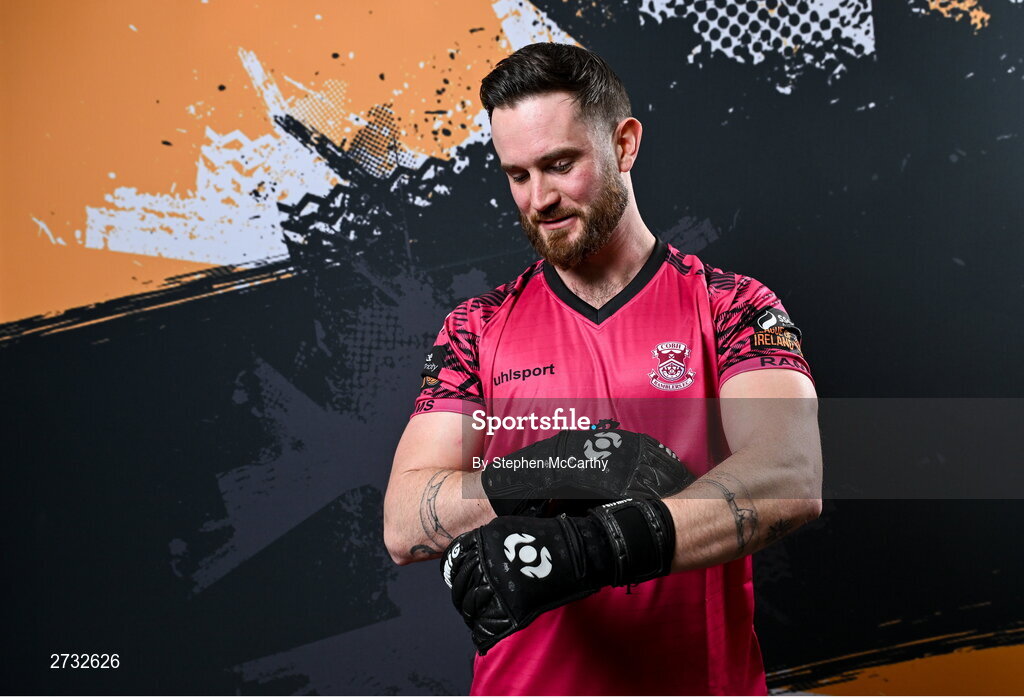 12 February 2024; Goalkeeper Cathal O’Hanlon poses for a portrait during a Cobh Ramblers FC squad portraits session at St Coleman's Park in Cobh, Cork. Photo by Stephen McCarthy/Sportsfile