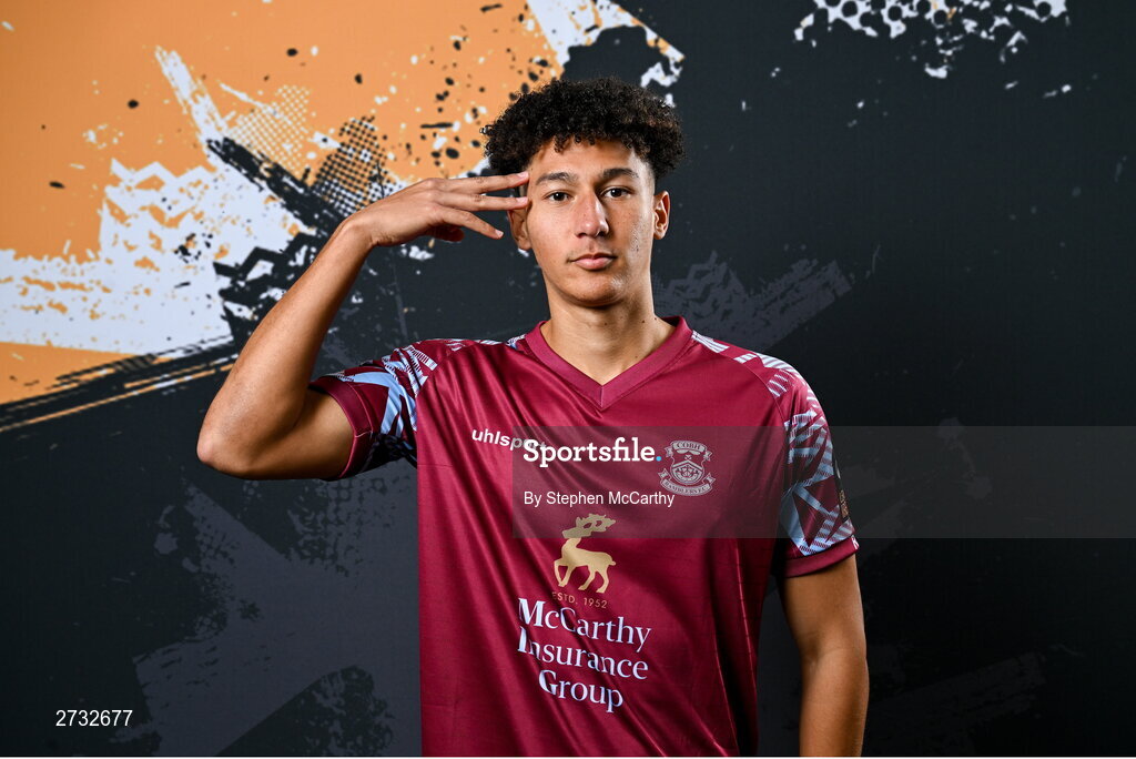 12 February 2024; Nolan Evers poses for a portrait during a Cobh Ramblers FC squad portraits session at St Coleman's Park in Cobh, Cork. Photo by Stephen McCarthy/Sportsfile