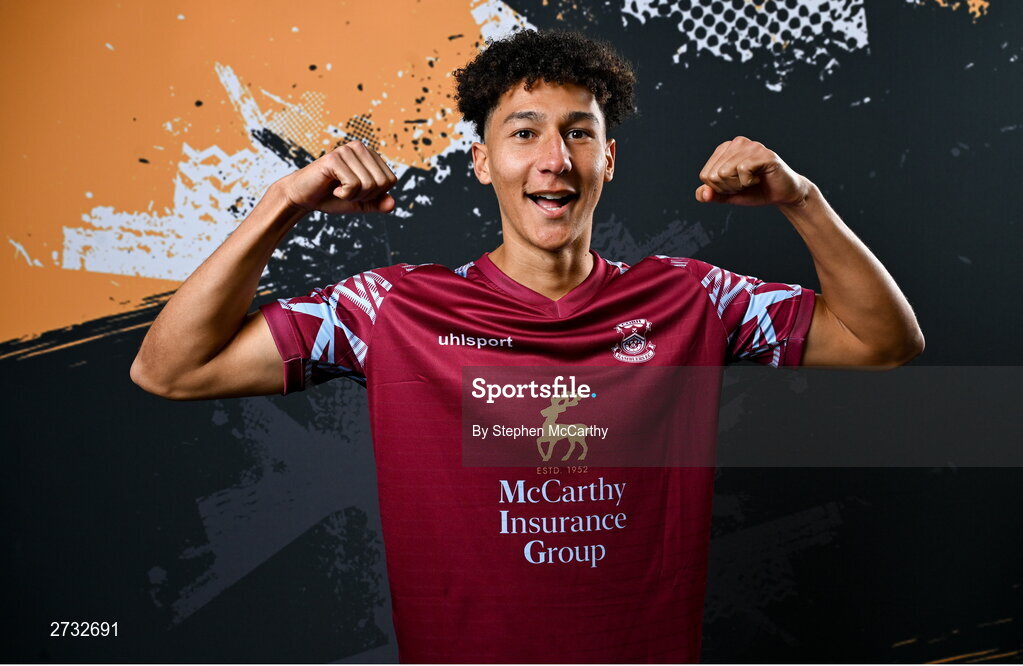 12 February 2024; Nolan Evers poses for a portrait during a Cobh Ramblers FC squad portraits session at St Coleman's Park in Cobh, Cork. Photo by Stephen McCarthy/Sportsfile