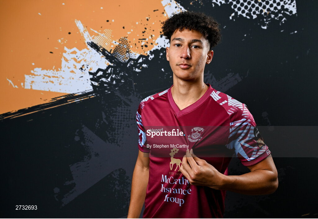 12 February 2024; Nolan Evers poses for a portrait during a Cobh Ramblers FC squad portraits session at St Coleman's Park in Cobh, Cork. Photo by Stephen McCarthy/Sportsfile