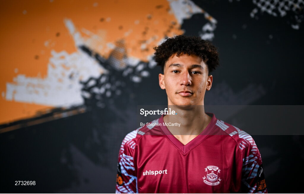 12 February 2024; Nolan Evers poses for a portrait during a Cobh Ramblers FC squad portraits session at St Coleman's Park in Cobh, Cork. Photo by Stephen McCarthy/Sportsfile