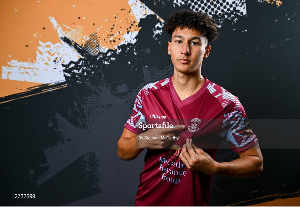 12 February 2024; Nolan Evers poses for a portrait during a Cobh Ramblers FC squad portraits session at St Coleman's Park in Cobh, Cork. Photo by Stephen McCarthy/Sportsfile
