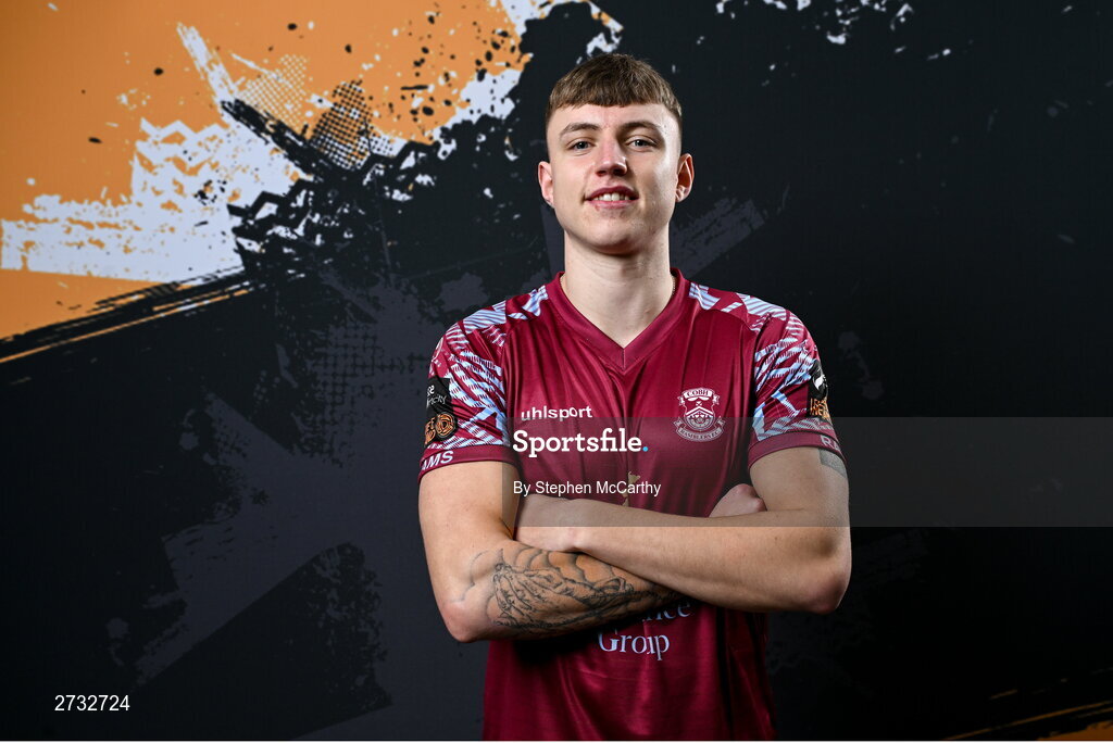 12 February 2024; Tiernan O’Brien poses for a portrait during a Cobh Ramblers FC squad portraits session at St Coleman's Park in Cobh, Cork. Photo by Stephen McCarthy/Sportsfile