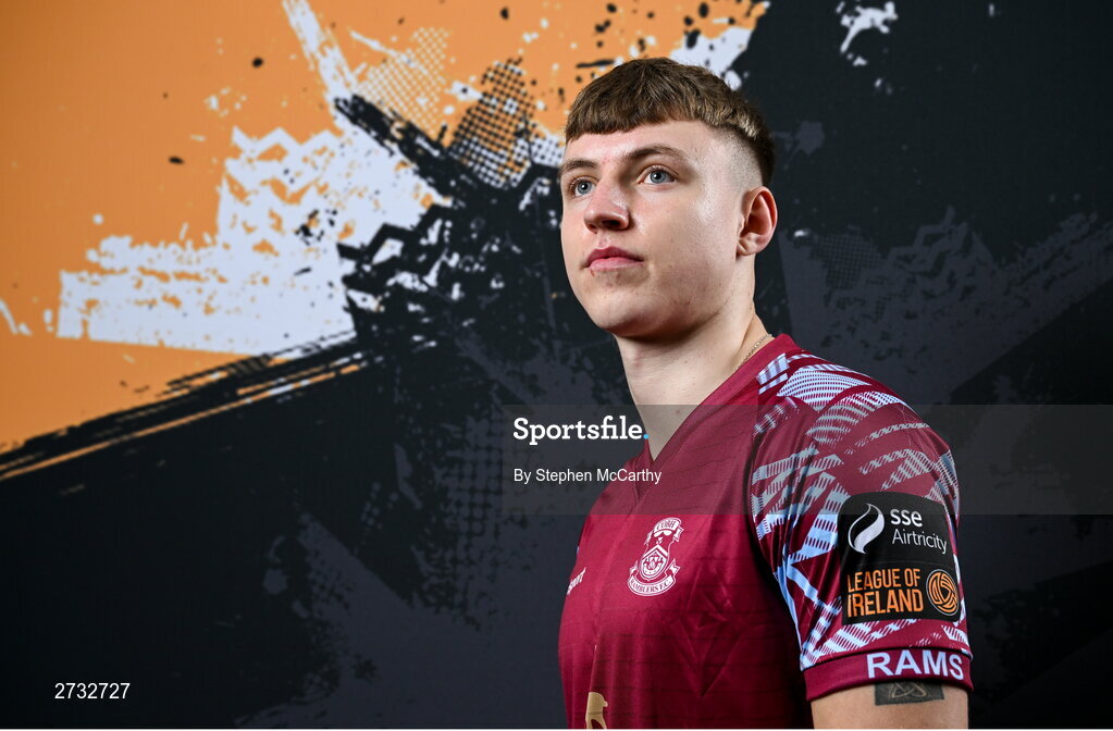 12 February 2024; Tiernan O’Brien poses for a portrait during a Cobh Ramblers FC squad portraits session at St Coleman's Park in Cobh, Cork. Photo by Stephen McCarthy/Sportsfile