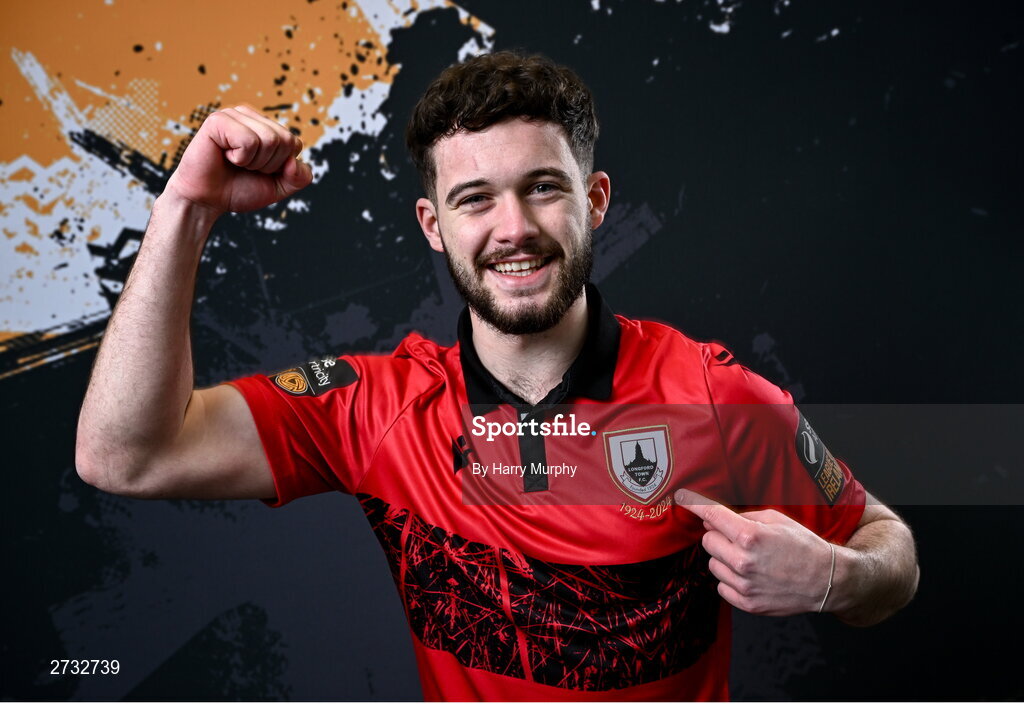 13 February 2024; Jordon Tallon poses for a portrait during a Longford Town FC squad portraits session at John Hyland Park in Baldonnell, Dublin. Photo by Harry Murphy/Sportsfile