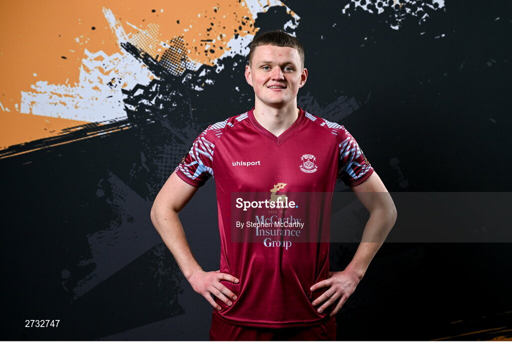 12 February 2024; Dean Larkin poses for a portrait during a Cobh Ramblers FC squad portraits session at St Coleman's Park in Cobh, Cork. Photo by Stephen McCarthy/Sportsfile