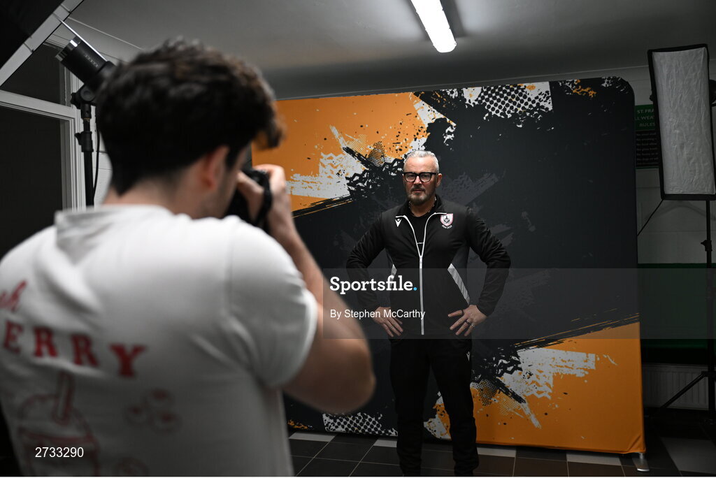 13 February 2024; Manager Stephen Henderson poses for Sportsfile photographer Harry Murphy during a Longford Town FC squad portraits session at John Hyland Park in Baldonnell, Dublin. Photo by Stephen McCarthy/Sportsfile