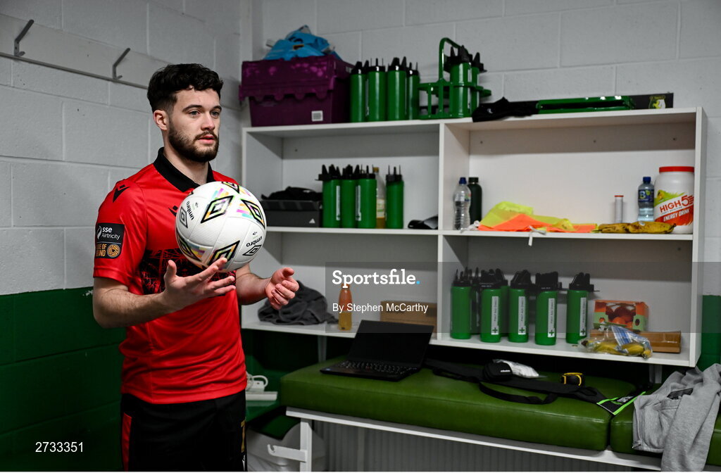 13 February 2024; Jordon Tallon poses for a portrait during a Longford Town FC squad portraits session at John Hyland Park in Baldonnell, Dublin. Photo by Stephen McCarthy/Sportsfile