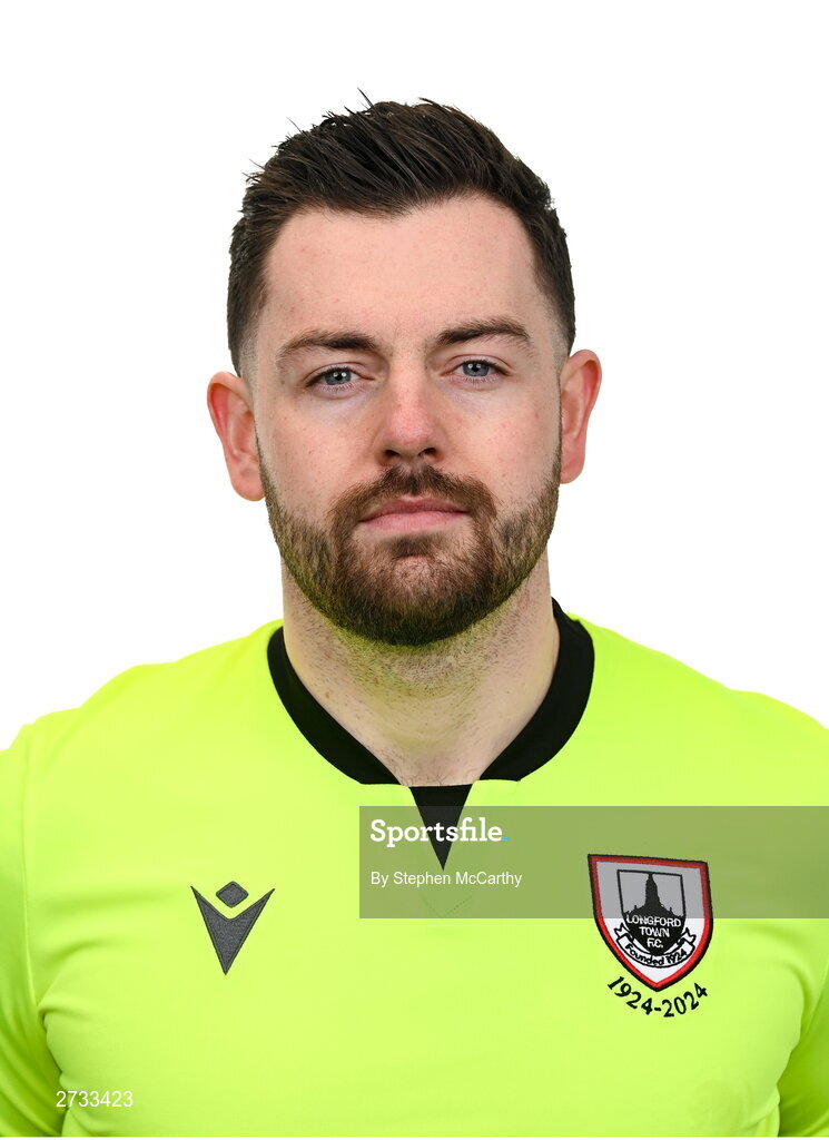 13 February 2024; Goalkeeper Jack Brady poses for a portrait during a Longford Town FC squad portraits session at John Hyland Park in Baldonnell, Dublin. Photo by Stephen McCarthy/Sportsfile