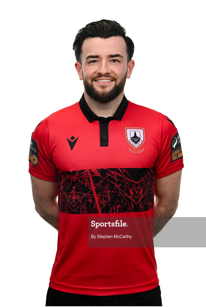 13 February 2024; Adam Wixted poses for a portrait during a Longford Town FC squad portraits session at John Hyland Park in Baldonnell, Dublin. Photo by Stephen McCarthy/Sportsfile