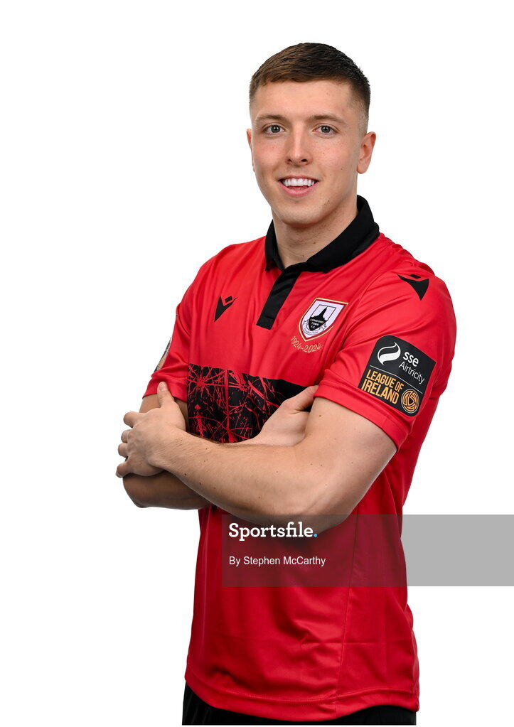 13 February 2024; Jamie Egan poses for a portrait during a Longford Town FC squad portraits session at John Hyland Park in Baldonnell, Dublin. Photo by Stephen McCarthy/Sportsfile