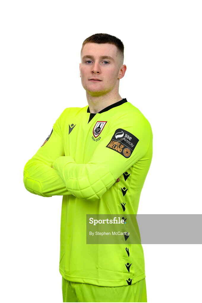 13 February 2024; Goalkeeper Jack Harrington poses for a portrait during a Longford Town FC squad portraits session at John Hyland Park in Baldonnell, Dublin. Photo by Stephen McCarthy/Sportsfile