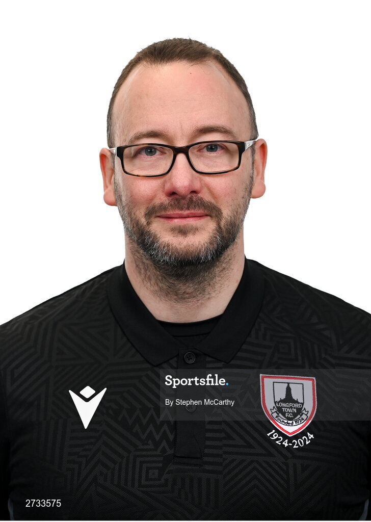 13 February 2024; Assistant sports therapist Richard Mullen poses for a portrait during a Longford Town FC squad portraits session at John Hyland Park in Baldonnell, Dublin. Photo by Stephen McCarthy/Sportsfile