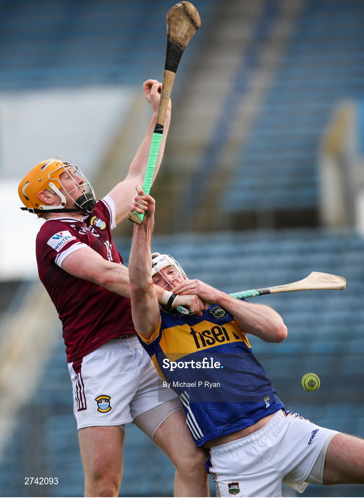 24 February 2024; Niall Mitchell of Westmeath in action against Seamus Kennedy of Tipperary during the Allianz Hurling League Division 1 Group B match between Tipperary and Westmeath at FBD Semple Stadium in Thurles, Tipperary. Photo by Michael P Ryan/Sportsfile