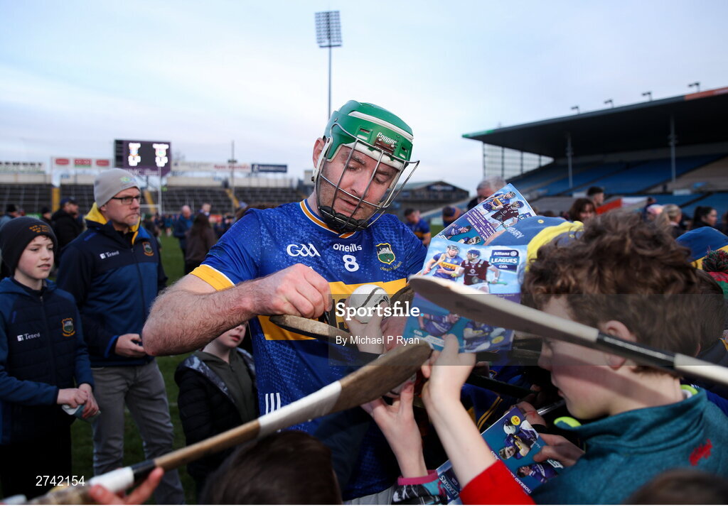 24 February 2024; Noel McGrath of Tipperary signs autographs for supporters after the Allianz Hurling League Division 1 Group B match between Tipperary and Westmeath at FBD Semple Stadium in Thurles, Tipperary. Photo by Michael P Ryan/Sportsfile