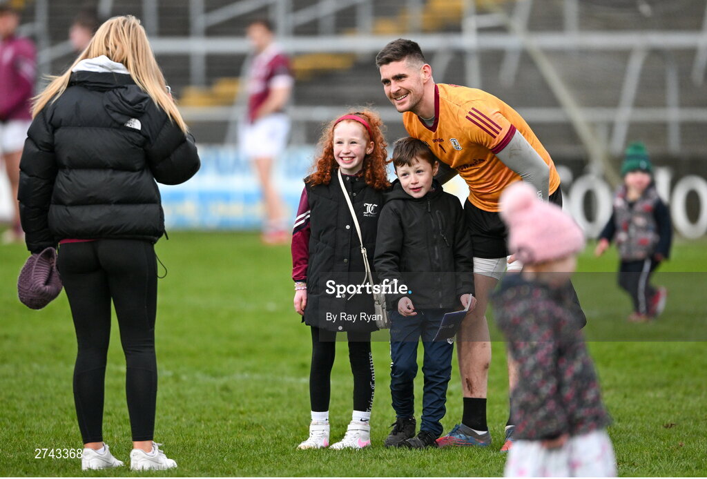 25 February 2024; Galway goalkeeper Connor Gleeson poses for pictures after the Allianz Football League Division 1 match between Galway and Derry at Pearse Stadium in Galway. Photo by Ray Ryan/Sportsfile