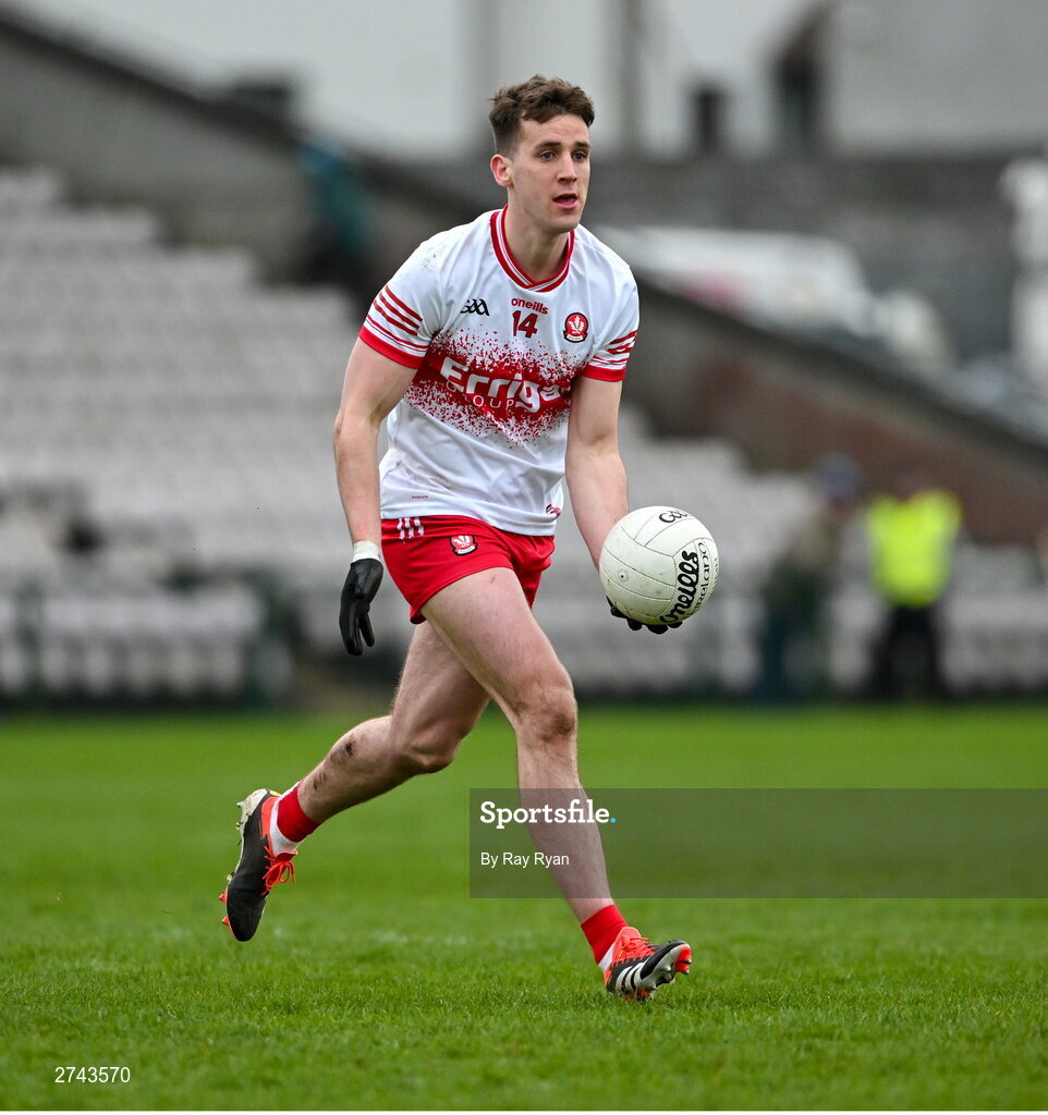 25 February 2024; Shane McGuigan of Derry during the Allianz Football League Division 1 match between Galway and Derry at Pearse Stadium in Galway. Photo by Ray Ryan/Sportsfile
