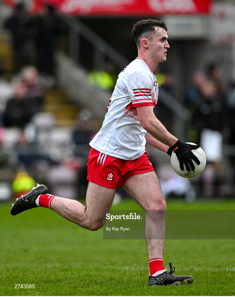 25 February 2024; Diarmuid Baker of Derry during the Allianz Football League Division 1 match between Galway and Derry at Pearse Stadium in Galway. Photo by Ray Ryan/Sportsfile