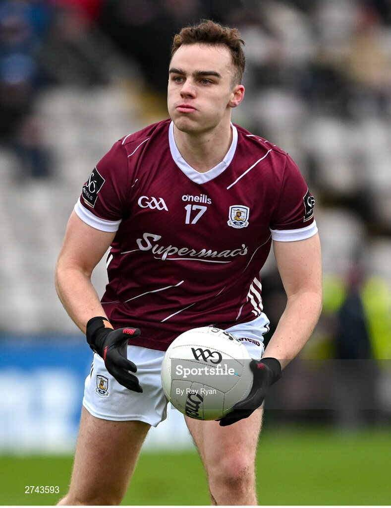25 February 2024; Daniel O’Flaherty of Galway during the Allianz Football League Division 1 match between Galway and Derry at Pearse Stadium in Galway. Photo by Ray Ryan/Sportsfile
