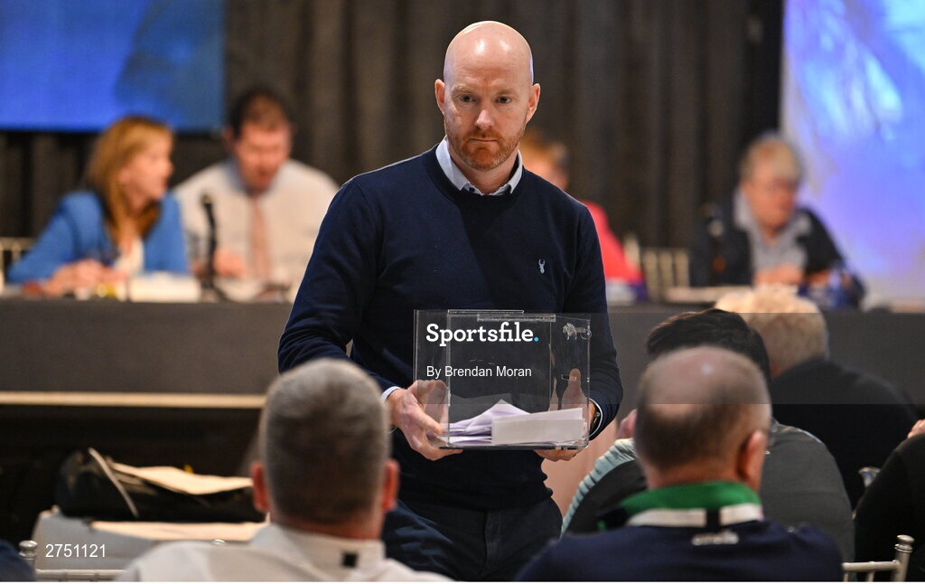 2 March 2024; Presidential election votes are collected during the LGFA Annual Congress at The Falls Hotel in Ennistymon, Clare. Photo by Brendan Moran/Sportsfile
