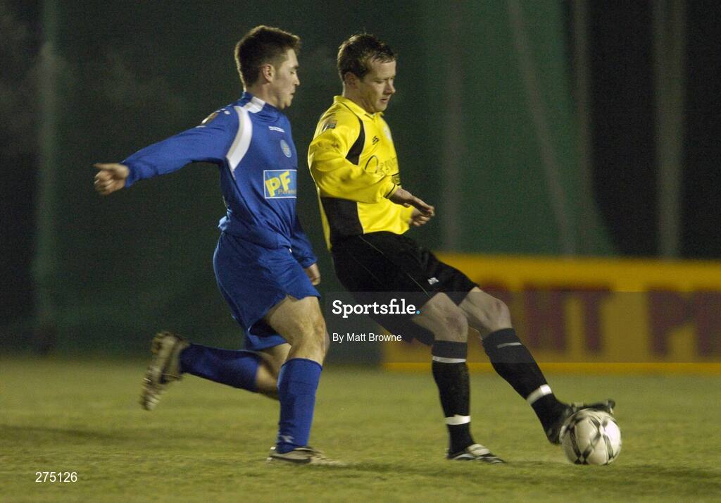 23 November 2007; Jonathan Minnock, Finn Harps, in action against Willie John Kiely, Waterford United. eircom League of Ireland Promotion / Relegation play-off, second leg, Waterford United v Finn Harps. RSC, Waterford. Picture credit; Matt Browne / SPORTSFILE