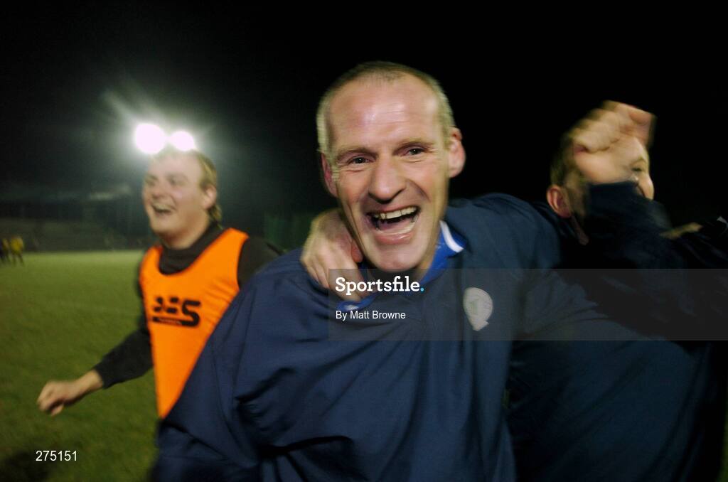 23 November 2007; Finn Harps manager Paul Hegarty celebrates at the final whistle after his team won promotion to the eircom League of Ireland Premier Division. eircom League of Ireland Promotion / Relegation play-off, second leg, Waterford United v Finn Harps. RSC, Waterford. Picture credit; Matt Browne / SPORTSFILE
