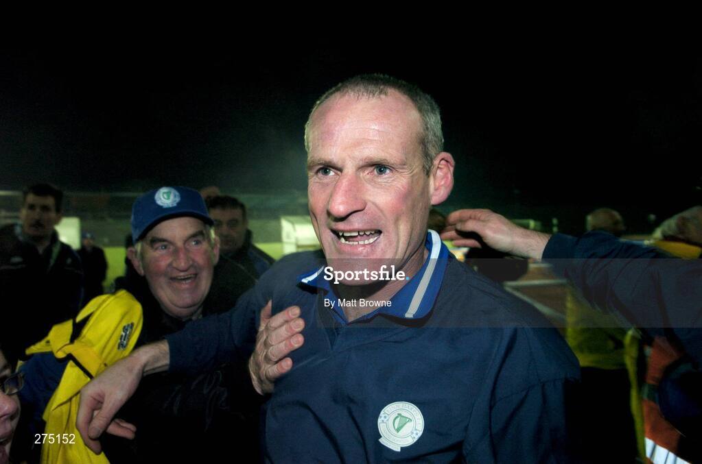 23 November 2007; Paul Hegarty, Finn Harps manager, celebrates his team's promotion to the eircom League of Ireland Premier Division after the match. eircom League of Ireland Promotion / Relegation play-off, second leg, Waterford United v Finn Harps. RSC, Waterford. Picture credit; Matt Browne / SPORTSFILE