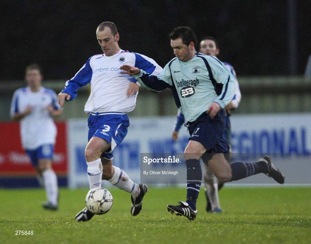 1 December 2007; Pat McShane, Linfield, in action against Ryan Semple, Institute. Carnegie Premier League, Institute v Linfield, Drumahoe, Derry. Picture credit; Oliver McVeigh / SPORTSFILE