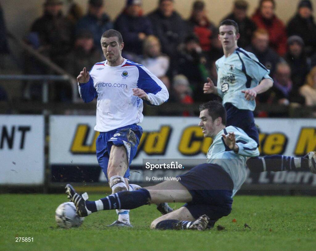 1 December 2007; Steven Douglas, Linfield, in action against David Ogilby, Institute. Carnegie Premier League, Institute v Linfield, Drumahoe, Derry. Picture credit; Oliver McVeigh / SPORTSFILE