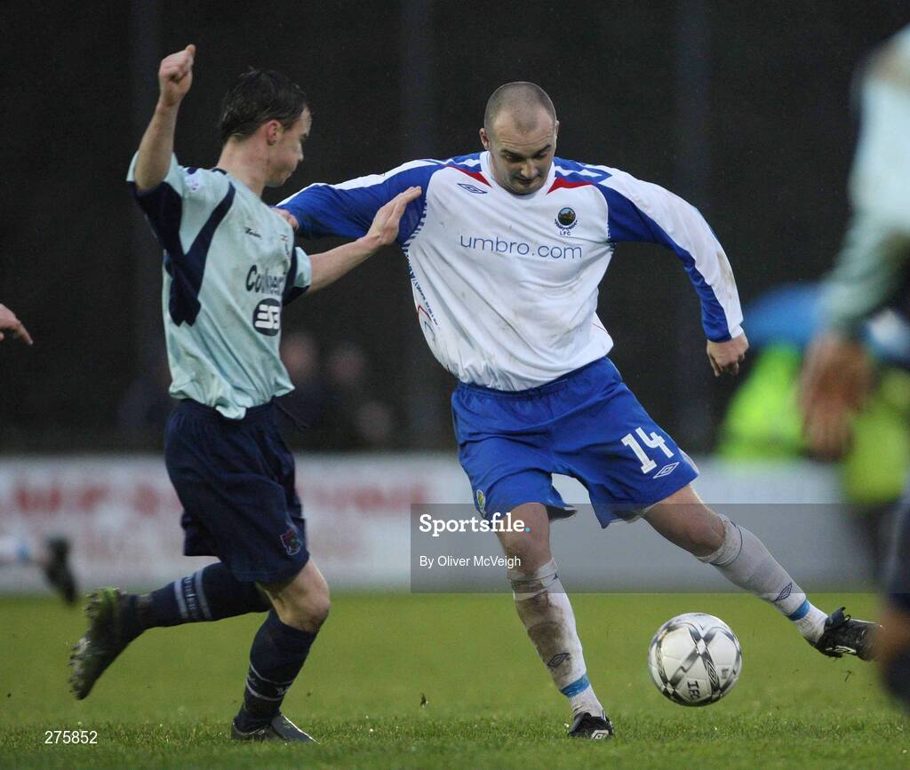 1 December 2007; Paul McAreavey, Linfield, in action against Ruari Boyle, Institute. Carnegie Premier League, Institute v Linfield, Drumahoe, Derry. Picture credit; Oliver McVeigh / SPORTSFILE