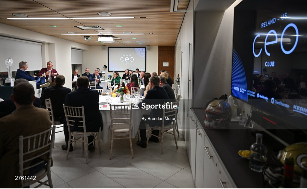 15 March 2024; Florida State University head coach Mike Norvell is interviewed by MC Matt Cooper at the Ireland-US CEO Club Dinner hosted by Eversheds Sutherland in association with the Aer Lingus College Football Classic. The Ireland-US CEO Club Dinner is part of a wider programme of networking events ahead of the annual Aer Lingus College Football Classic aiming to celebrate the remarkable sporting, cultural and business relationship between both countries. Tickets are now on sale for the 2024 Aer Lingus College Football Classic between Georgia Tech and Florida State University at www.ticketmaster.ie/collegefootball. The fixture will take place at the Aviva Stadium, Dublin, on Saturday, 24th August 2024. Photo by Brendan Moran/Sportsfile