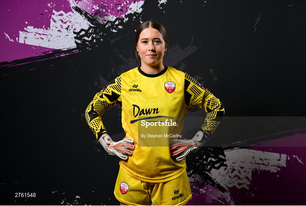 14 March 2024; Goalkeeper Katie Irwin during a Treaty United FC squad portrait session at UL North Campus in Limerick. Photo by Stephen McCarthy/Sportsfile