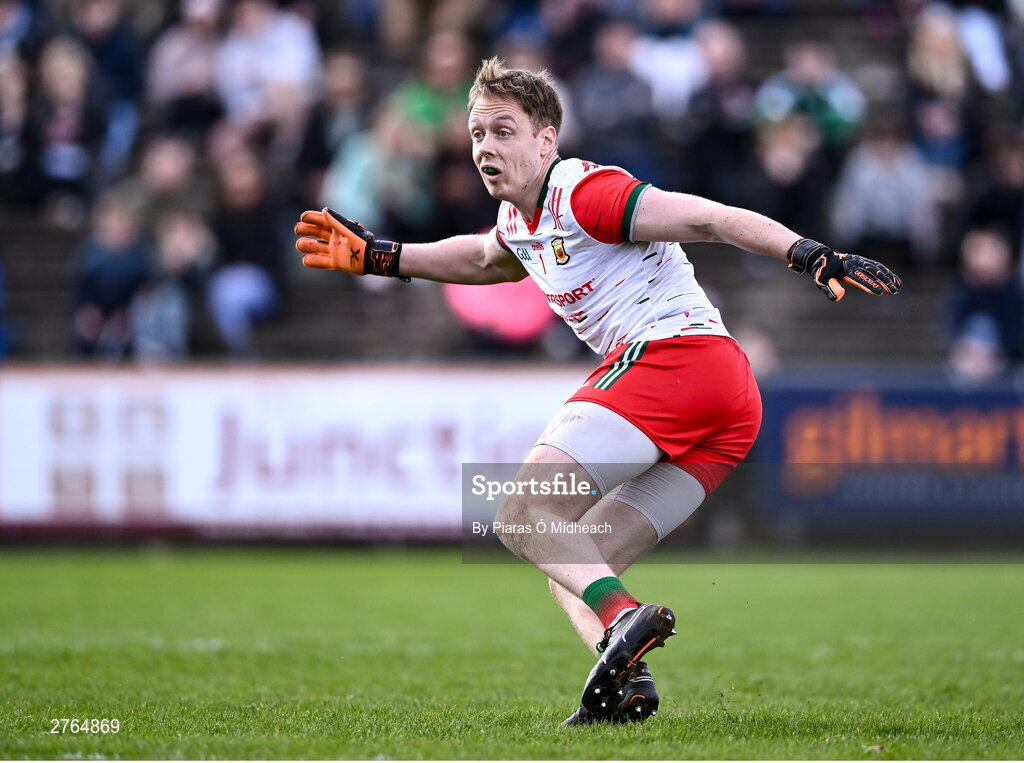 17 March 2024; Mayo goalkeeper Colm Reape during the Allianz Football League Division 1 match between Mayo and Derry at Hastings Insurance MacHale Park in Castlebar, Mayo. Photo by Piaras Ó Mídheach/Sportsfile