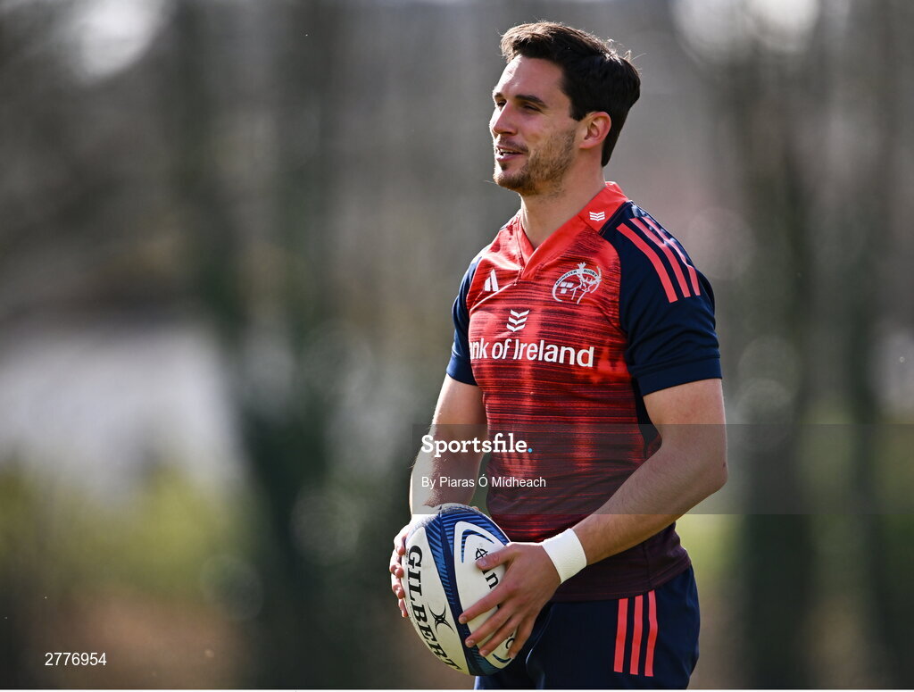3 April 2024; Joey Carbery during Munster rugby squad training at University of Limerick in Limerick. Photo by Piaras Ó Mídheach/Sportsfile