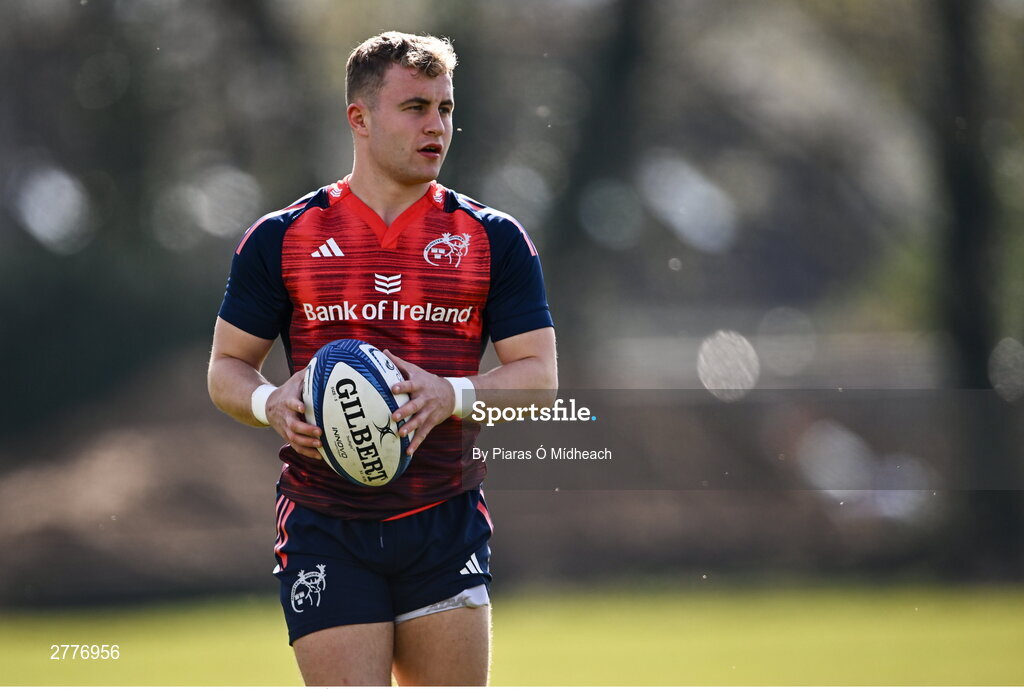 3 April 2024; Craig Casey during Munster rugby squad training at University of Limerick in Limerick. Photo by Piaras Ó Mídheach/Sportsfile