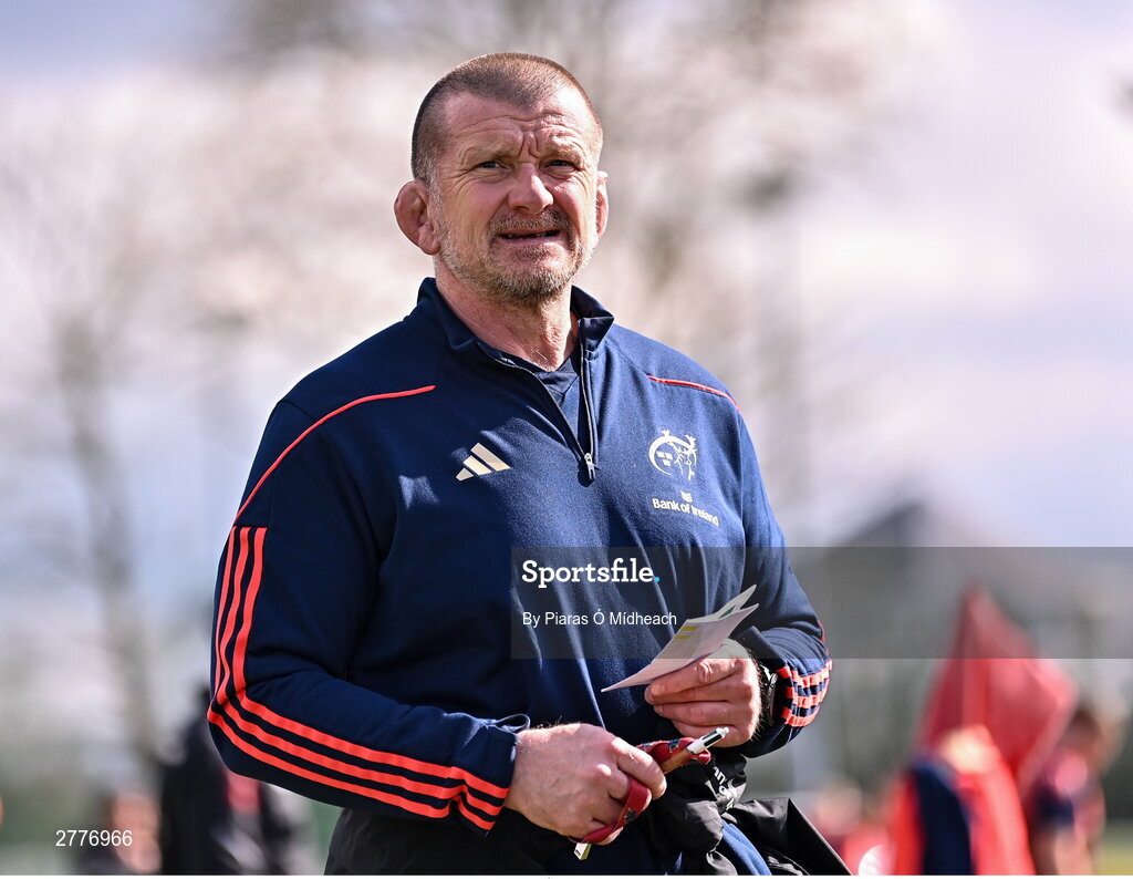 3 April 2024; Head coach Graham Rowntree during Munster rugby squad training at University of Limerick in Limerick. Photo by Piaras Ó Mídheach/Sportsfile