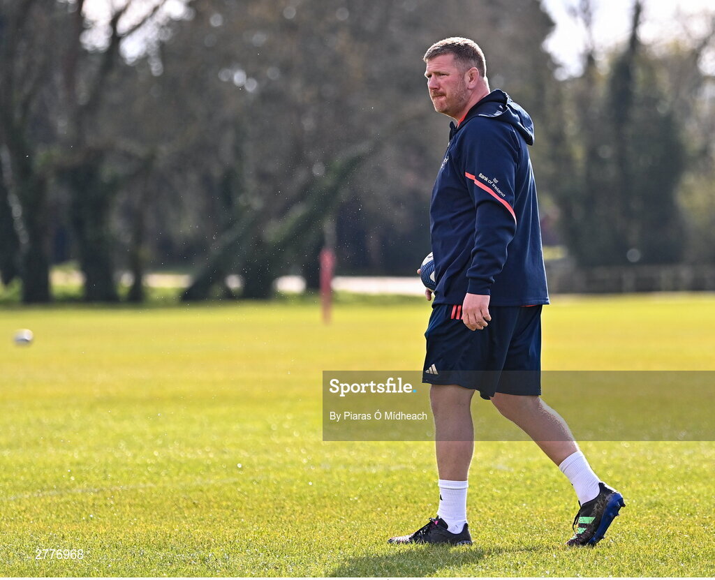 3 April 2024; Forwards coach Andi Kyriacou during Munster rugby squad training at University of Limerick in Limerick. Photo by Piaras Ó Mídheach/Sportsfile