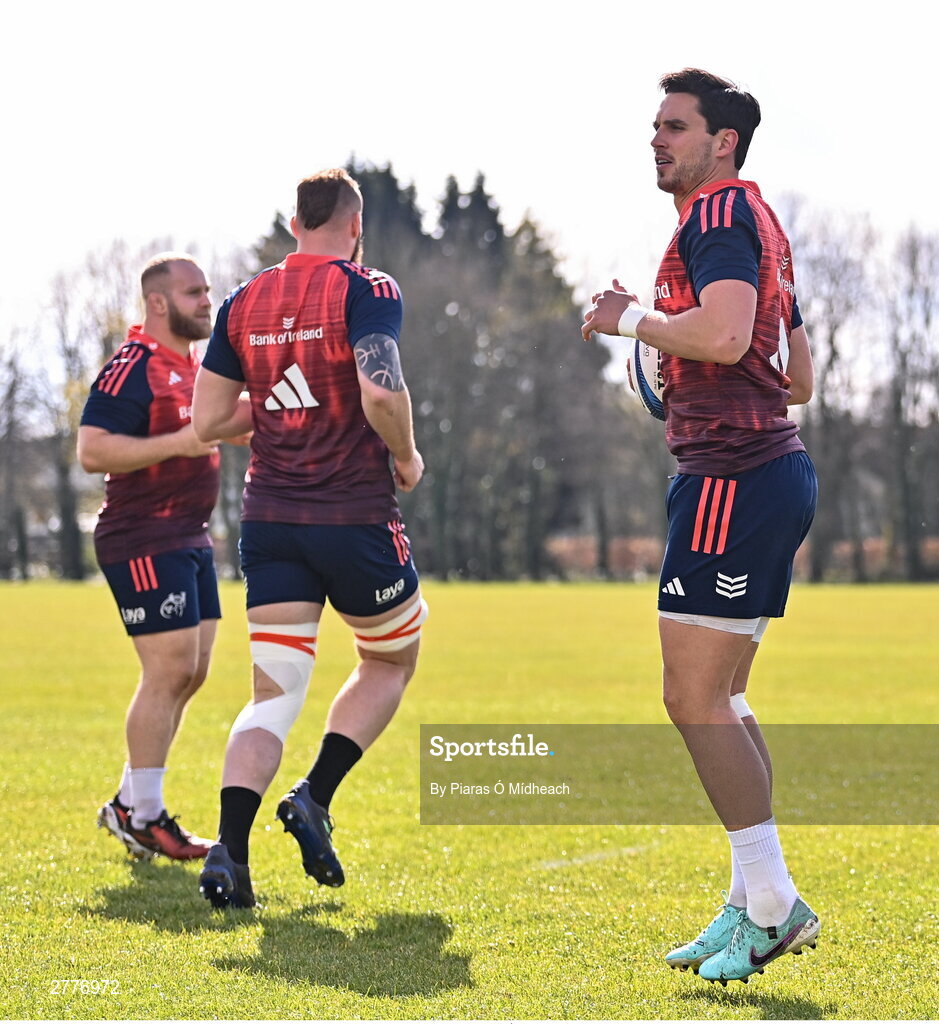3 April 2024; Joey Carbery during Munster rugby squad training at University of Limerick in Limerick. Photo by Piaras Ó Mídheach/Sportsfile