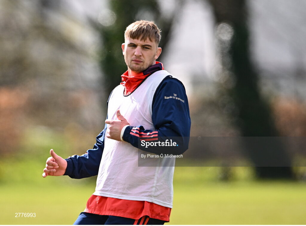 3 April 2024; Gavin Coombes during Munster rugby squad training at University of Limerick in Limerick. Photo by Piaras Ó Mídheach/Sportsfile