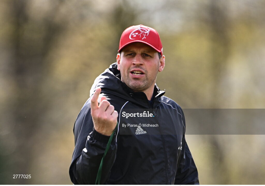 3 April 2024; Defence coach Denis Leamy during Munster rugby squad training at University of Limerick in Limerick. Photo by Piaras Ó Mídheach/Sportsfile