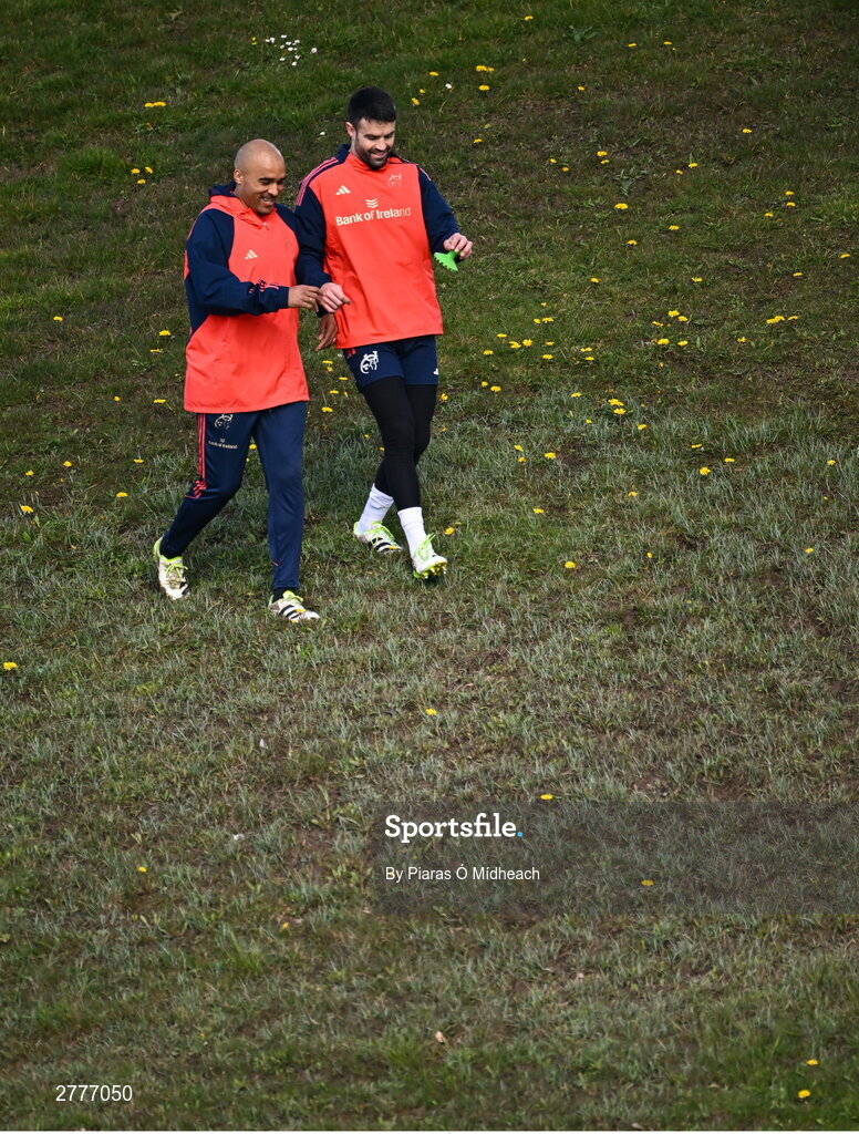 3 April 2024; Simon Zebo, left, and Conor Murray arrive for Munster rugby squad training at University of Limerick in Limerick. Photo by Piaras Ó Mídheach/Sportsfile