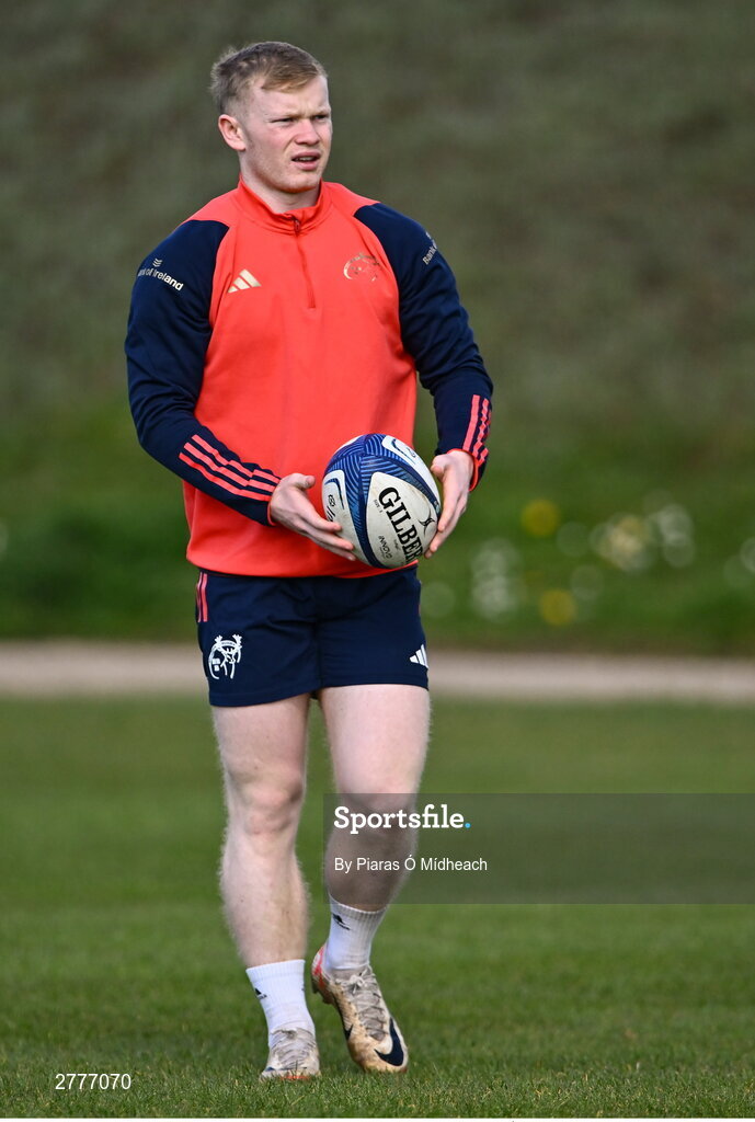 3 April 2024; Ethan Coughlan during Munster rugby squad training at University of Limerick in Limerick. Photo by Piaras Ó Mídheach/Sportsfile