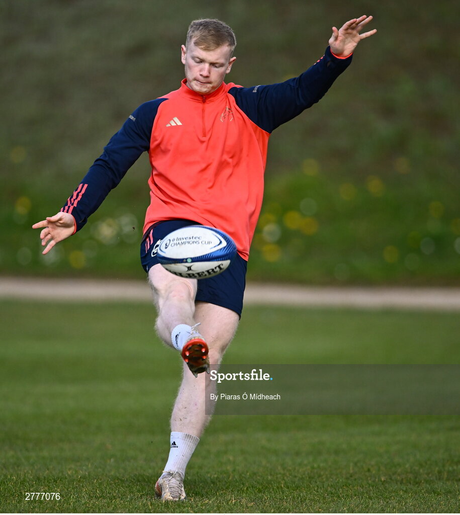 3 April 2024; Ethan Coughlan during Munster rugby squad training at University of Limerick in Limerick. Photo by Piaras Ó Mídheach/Sportsfile