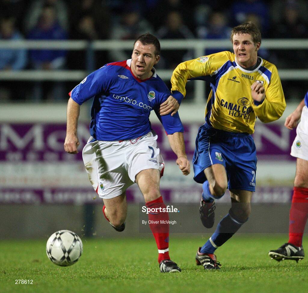 6 November 2007; Damien Curran, Linfield, in action against Joe McDonnell, Newry City. CIS Insurance Cup semi-final, Linfield v Newry City, Mourneview Park, Lurgan, Co. Armagh. Picture credit; Oliver McVeigh / SPORTSFILE