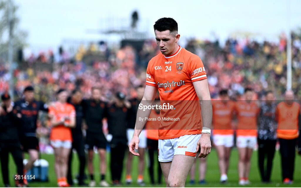 12 May 2024; Shane McPartlan of Armagh during the penalty shoot-out of the Ulster GAA Football Senior Championship final match between Armagh and Donegal at St Tiernach's Park in Clones, Monaghan. Photo by Piaras Ó Mídheach/Sportsfile